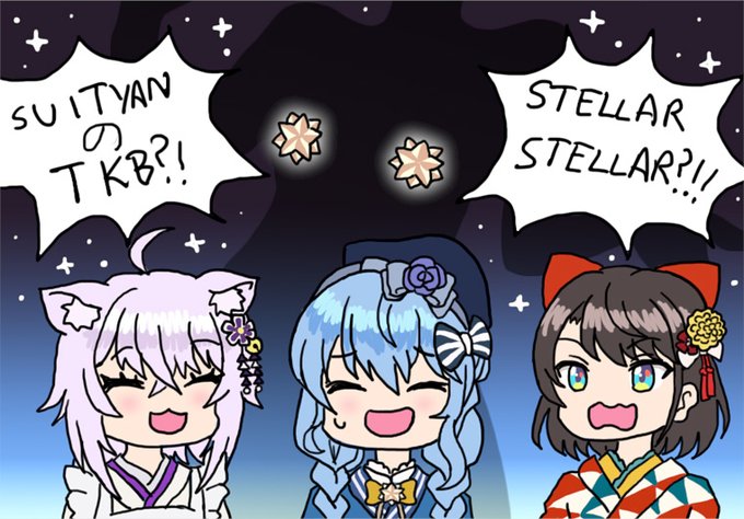 Stellar Stellar?!! #ホロライブ #猫又おかゆ #絵かゆ #プロテインザスバル #大空スバル #ほしまちぎゃらりー #星街すいせい #hololive pixiv.net/artworks/10665…