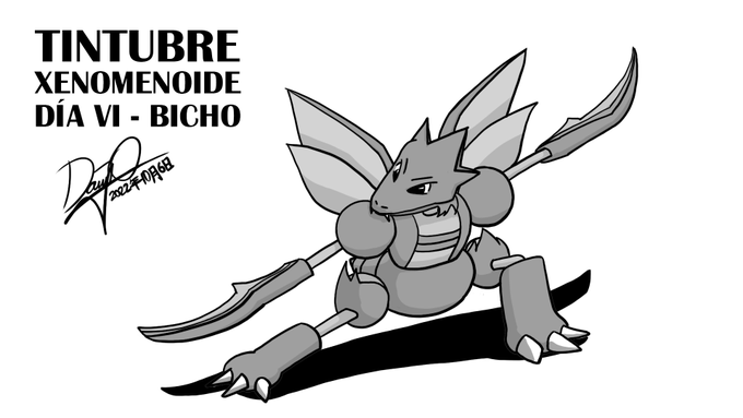 Día VI del #xenotintubre 2022 de Xenomenoide Dedicado a los #pokemon tipo bicho, les traigo a uno de mis favoritos de este tipo, Scyther #inktober2022
