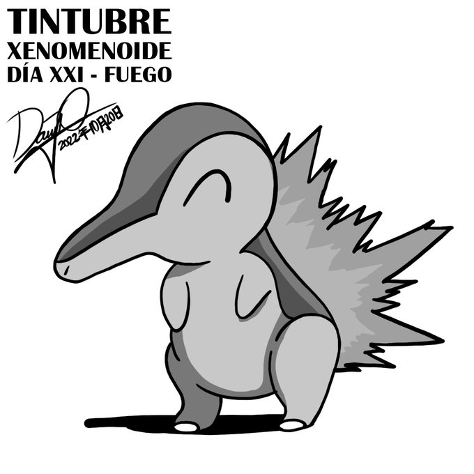 Día XXI del #xenotintubre 2022 de @xenomenoide Dedicado a los #Pokemon de tipo fuego. Hoy les traigo un dibujito express del buen Cyndaquil. #inktober2022