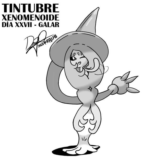 Día XXVII del xenotintubre 2022 de @xenomenoide Seguimos en la recta final hacia #Halloween con la #Pokemon bruja Hatterene saludando a todos. #inktober2022