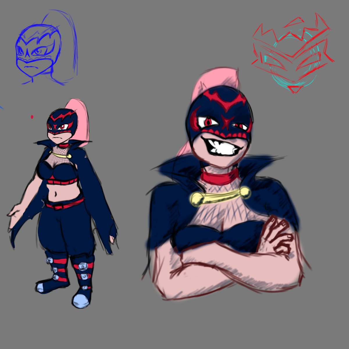 A few sketches of a wreslting persona idea I had for Calli, name: La Reina del Infierno #callillust