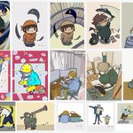 高齢の家族が灰色っぽい色、よく間違えてて苦手みたい 楽しんでもらえるよう 今月はカラーは影の代わりに視点で空間作りに挑戦 メビウスの輪の上に絵を乗っけてみたり(上段中央) 中央のパースをずらして、前後に分割してみたり(上段右) 上手くできてたらいいな☺️💦 #今月描いた絵を晒そう