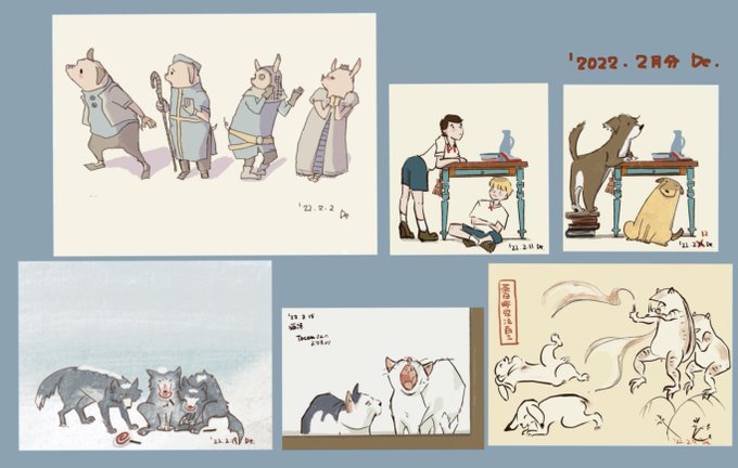 ジェスドロしかしてないと思ってたので、 2月はまとめしてませんでした。 今年に入ってから、下記の2つを比べながら 描いてます☺️ ・動物スケッチから動物を描く ・人間スケッチから動物を描く 前者は色彩が、後者は表情の表現が自由で楽しい🍀 #先月描いた絵を晒そう