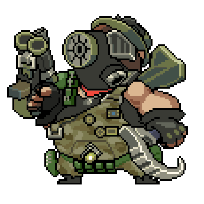 I just noticed that my previous tweet badly cropped the image so here it is again... Ladies and gentlemen, Roadhog in his militia skin. #pixelart #Overwatch #Roadhog #ドット絵 #OverwatchFanart