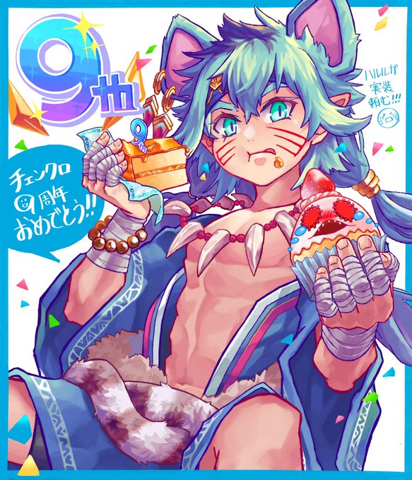 「最強のこの俺が!!繋ぐぜ、絆のMaxChain!!」 「しっしっし!やっちゃえハルルガ!」 最後はハルルガでMaxChain ! チェンクロが繋げてくれた全ての絆に感謝です! チェンクロ10周年はいよいよ!明日!! #チェンクロ10周年カウントダウン/リレー企画 #チェンクロ #チェンクロアート