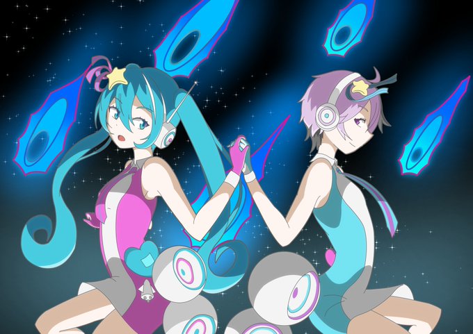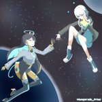 「こんにちは、じんるい。」 @oudon__uma さんの代理ちゃんとうちの代理ちゃんをペアで描いてみました!宇宙繋がり、青インナー繋がりということで...! #イラスト #オリジナル