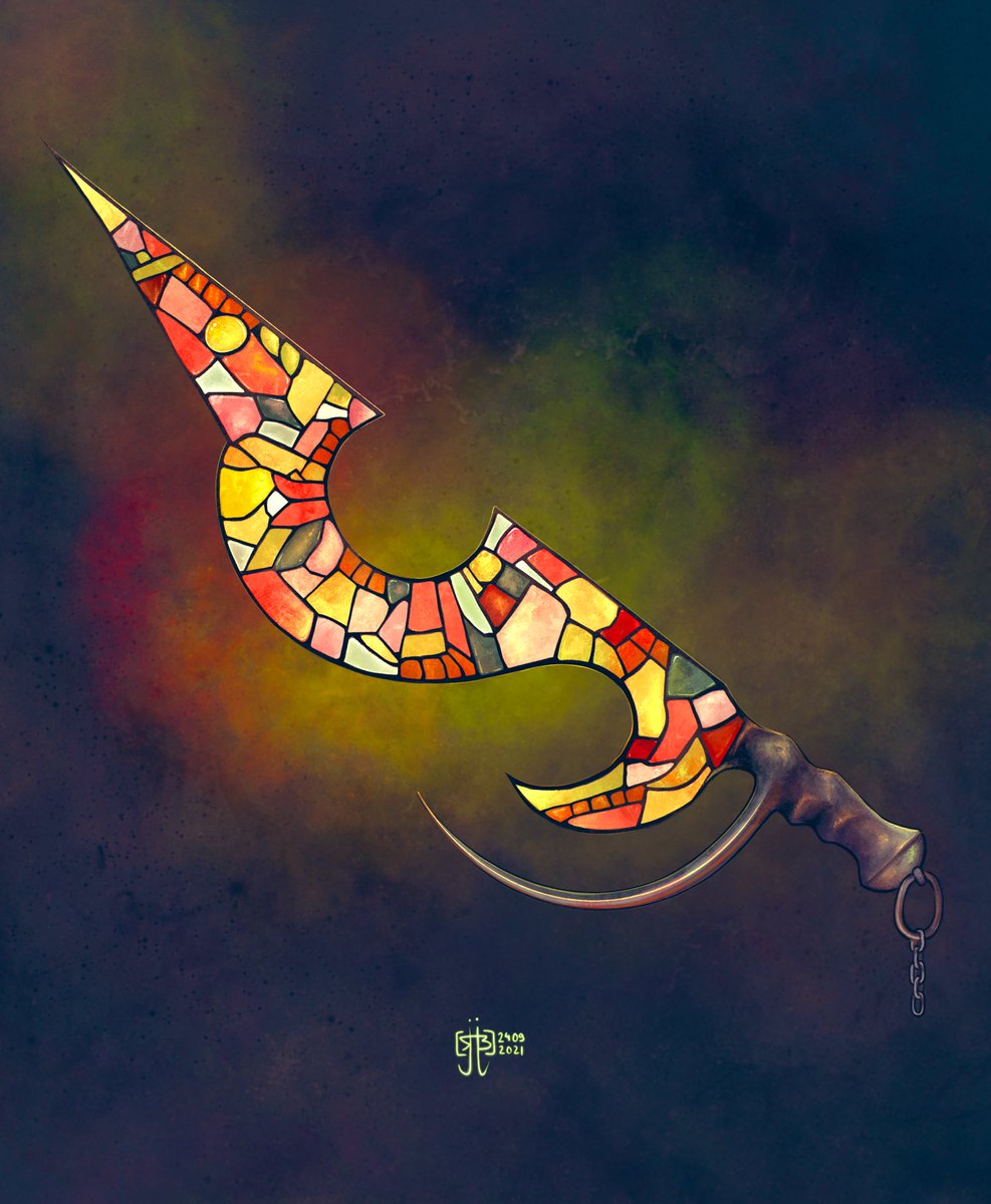 Traditional Trash Elf sword, 100% upcycled junk metal and glass from the wastefalls of the clueless Solar elves. Complete with hook for collecting your human/gobbit ears. (Not suitable for hunting, use only with home grown soft human.) #Swordtember2021 #swordtember #fantasy #elf