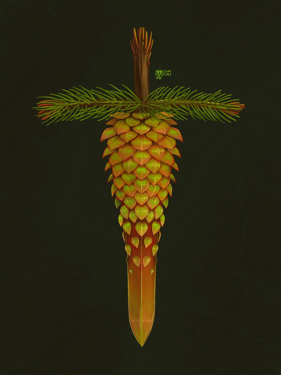 It’s #forest time for #Swordtember2021 ! No story. It grows on a spruce. There. :D I love conifers. #swordtember #fantasy #fantasyart