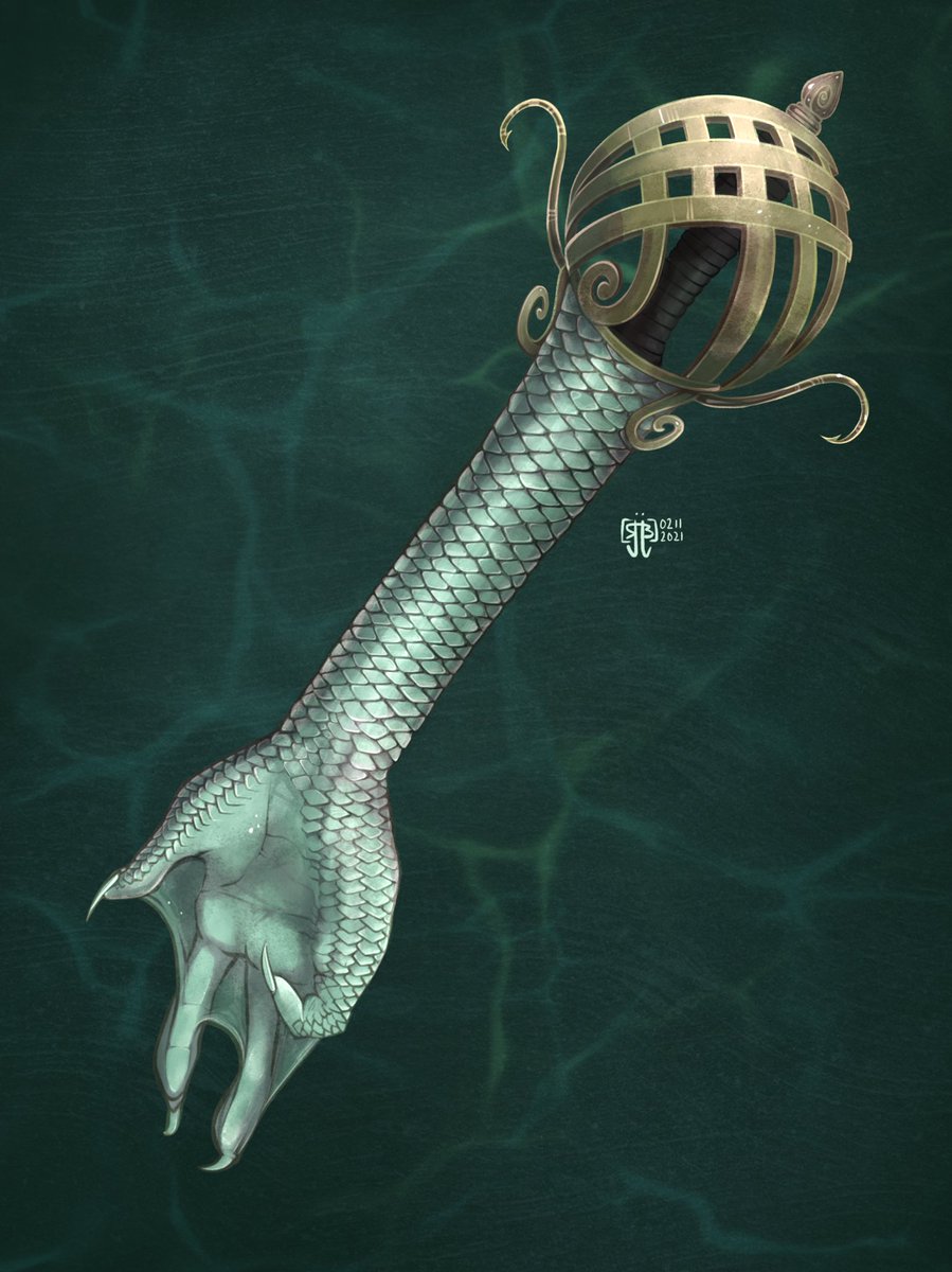 Genuine single kelpie arm with a traditional scottish basket handle. Great for friendly battle or some light disagreement. Do not put in seawater. Do not. Put. In sea water. #swordtember #fantasyart #weapondesign #sword #kelpie #MerMan #gameartist
