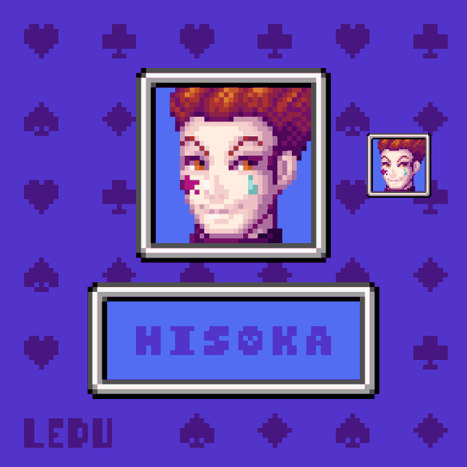 My favorite hunter, Hisoka, in the #GoldenSunPortrait style for @Pixel_Dailies 🃏 #pixel_dailies #pixelart #ドット絵 #hunterxhunter #hxh #hxhfanart #hisoka