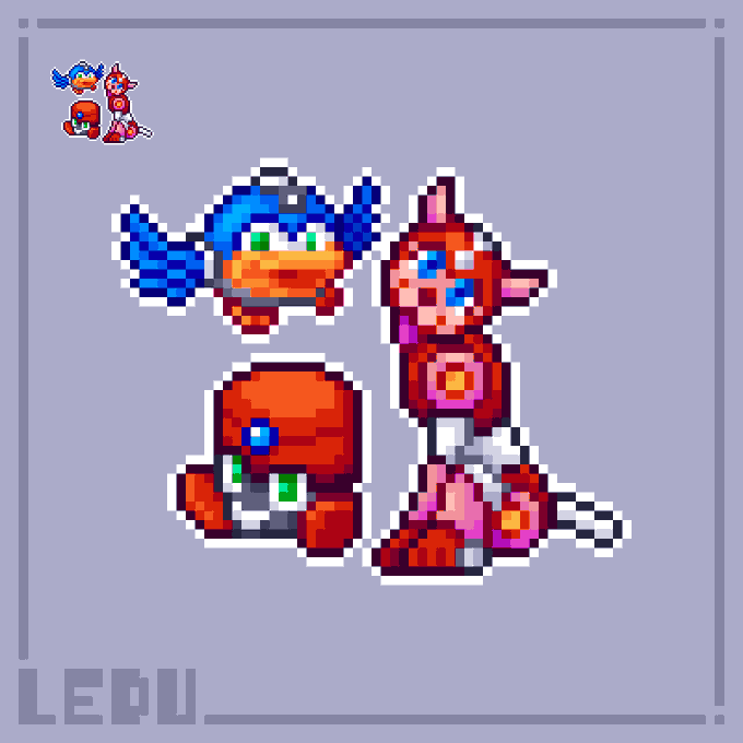 For today's #pixel_dailies some of Mega Man's companions, Rush, Eddie and Beat! #Companion @Pixel_Dailies #pixelart #ドット絵 #megaman #megamanfanart #aseprite