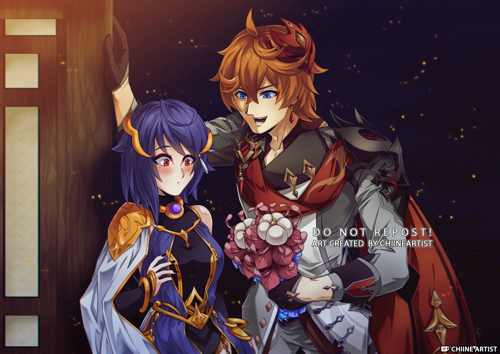 Tartaglia: "Sorry I'm late but I brought you some flowers!" Yue: "E-Ehh!?" - This was supposed to be my Valentine drawing lmao! Just managed to finish it, finally. #GenshinImpactOC #genshinimpactfanart