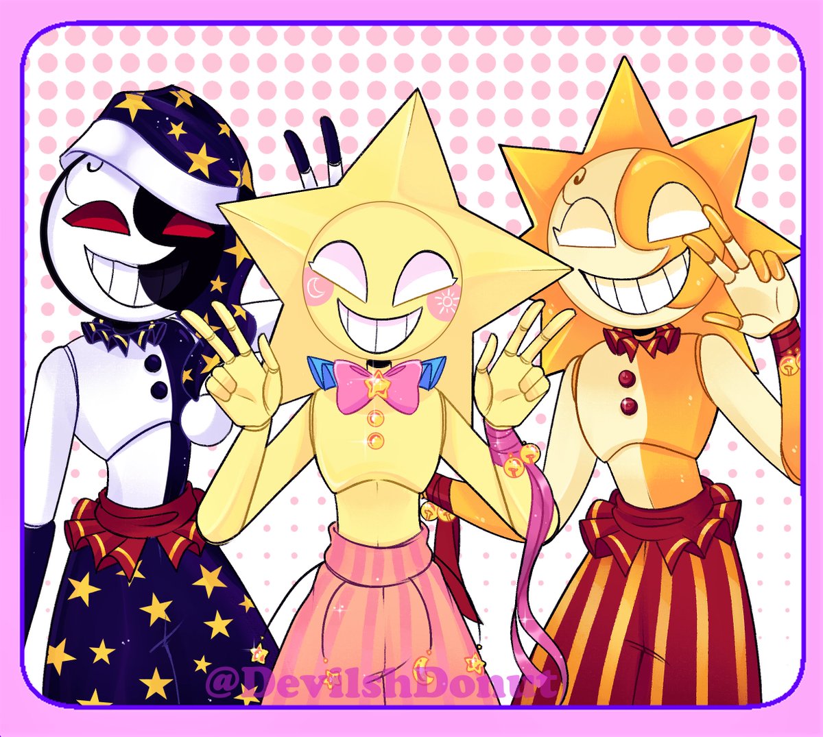 Stardrop and his bros 🌜⭐️☀️ This pic was gonna have angst follow after buuuuutttt... it's too cute #fnafsecuritybreachfanart #fnafsundrop #Moondropfnaf #fnafoc
