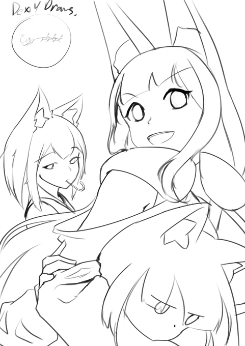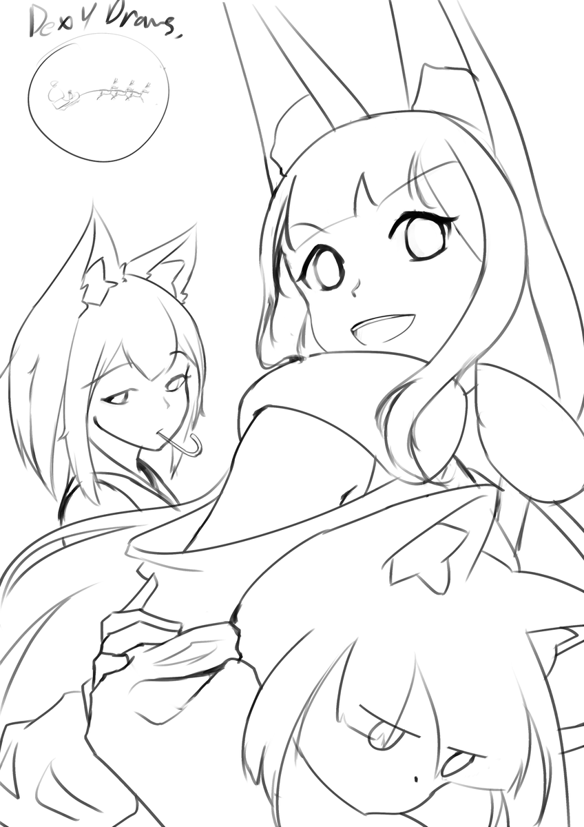 Aria dragging Kage and Wolfie to have some fun on christmas forgot i was supposed to draw christmas theme outfits and ended up with their usual outfits... so i added santa in the back #MerryXmas #rkgk