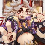 Chubby Itto with a cute onikabuto shaped lolipop !! 🪲🍭 ~ ~ ~ ~ ~ (It had a few mistakes in the past, so I fixed them! ๑>◡<๑) #GenshinImpact #genshinimpactfanart #aratakiitto