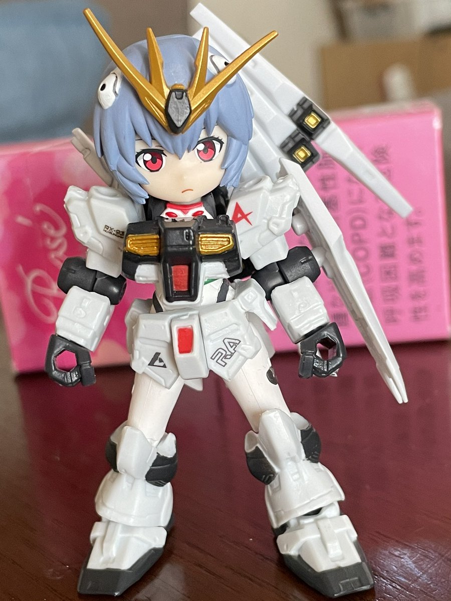 #デスクトップアーミー 綾波3人目が来たので #モビルスーツアンサンブル の νガンダムとmixing 2枚目、胸のパーツを少しいじった