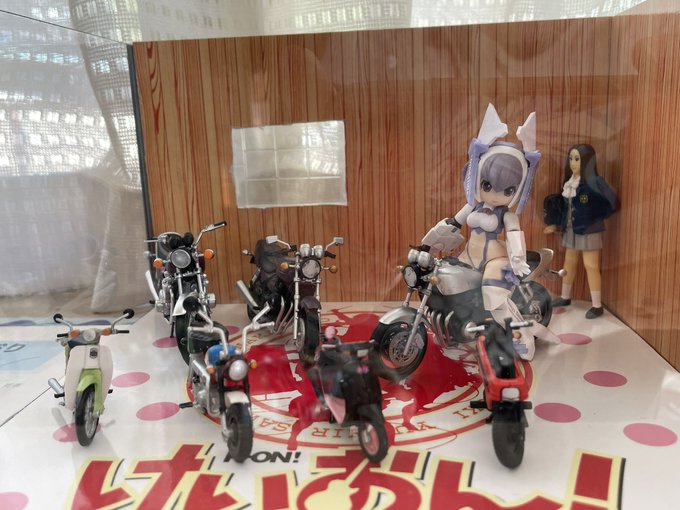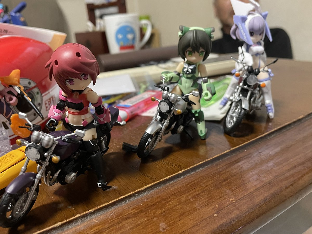 医者の帰りに良さげな物売ってたから買ってしまったので、組み立てバイク並べてみた #デスクトップアーミー #ガチャガチャ #バイクガチャ #けいおん #ガレージキット