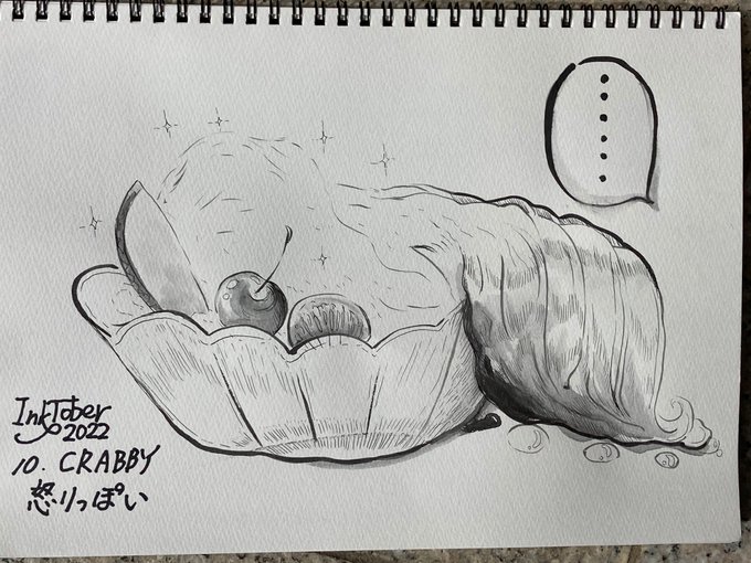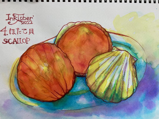 焼き菓子マドレーヌの本家初代はホタテの貝殻に生地を入れて焼いたらしい😆ホルベインドローイングインク&ドクターマーチン・ラディアントを使用しました。 #inktober2022 #インクトーバー2022 #インクトーバー #SCALLOP
