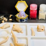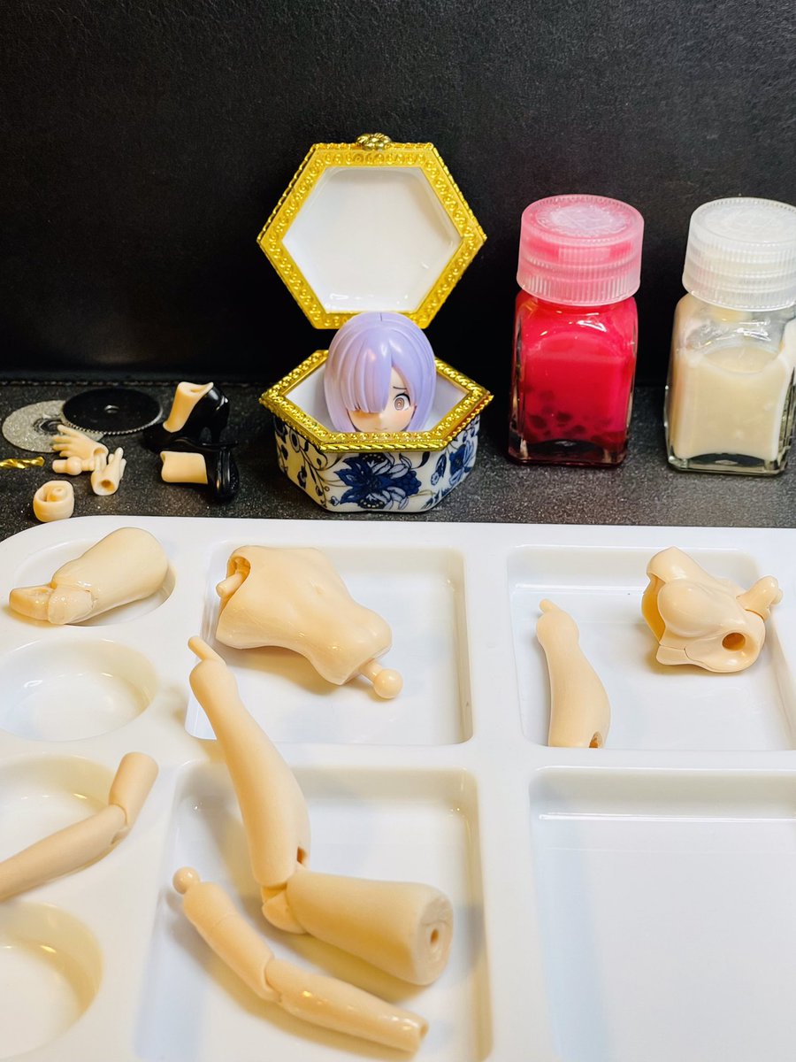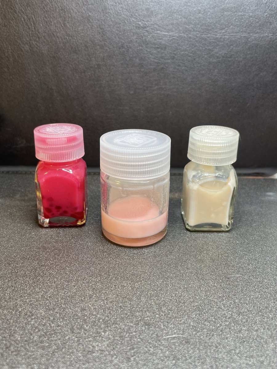 #メガミデバイス #30MS #プラモデル好きと繋がりたい 茶番はさておき、先程のグローいナイナーパテと肌色ナイナーパテを合わせると、こんなかわいい桜色に💕 桜色パテの使い道ですって? …えっと、グロパテは30MSティアーシャの赤、メガミデバイスエクスキューショナーの透明赤を3:7で。