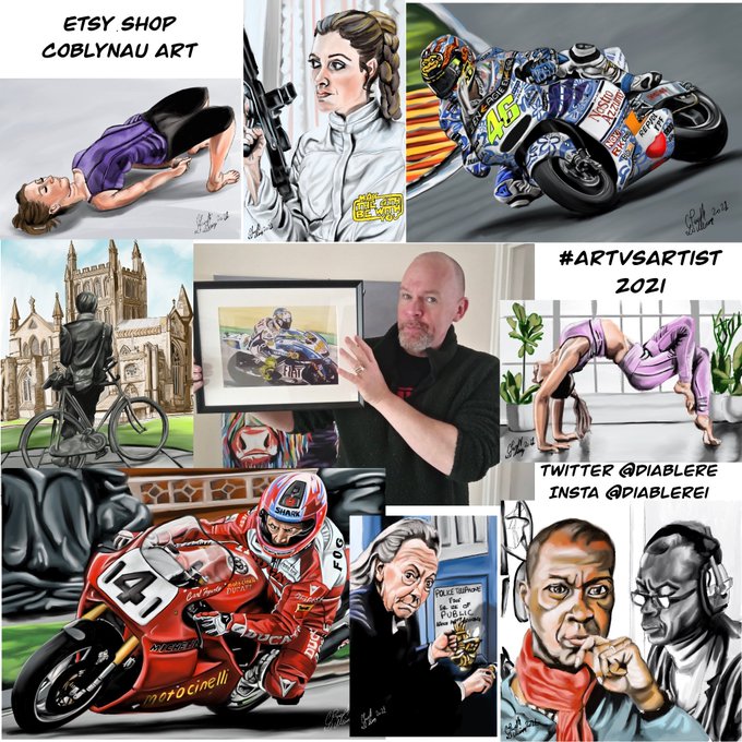 Here's my #artvsartist2021 #artvsartist 2021 has been a great year for me art wise with 348 completed paintings. It really was difficult picking just 9. Also got a dog so she's there too.