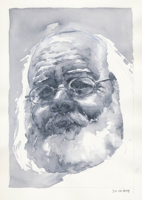 Although I didn't post anything in the past, I did the #Inktober2019 challange successfully. This year I did 31 portraits with watercolors. Here is the result of the last day of #Inktober. I will post more later (when I have time to scan them)