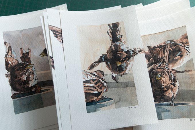 Yesterday it was last day of #inktober2020. Like the past three years I participated but ignored the official themes. Instead I painting fighting #sparrows which I observed from my home office desc. You can see all drawings at instagram.com/dianalange/ #inktober #illustration #bird