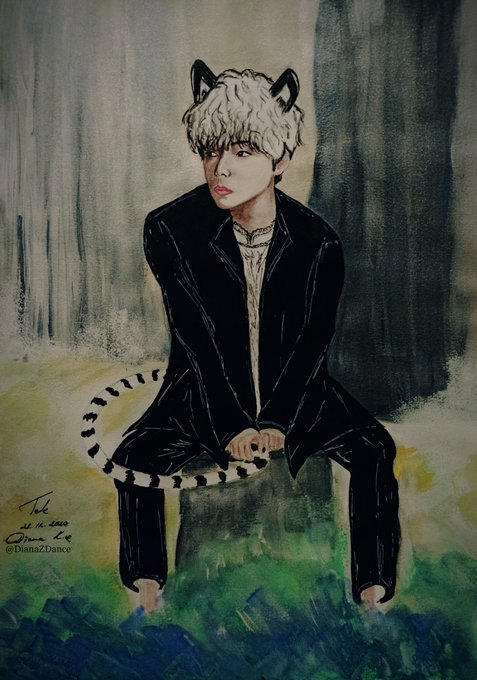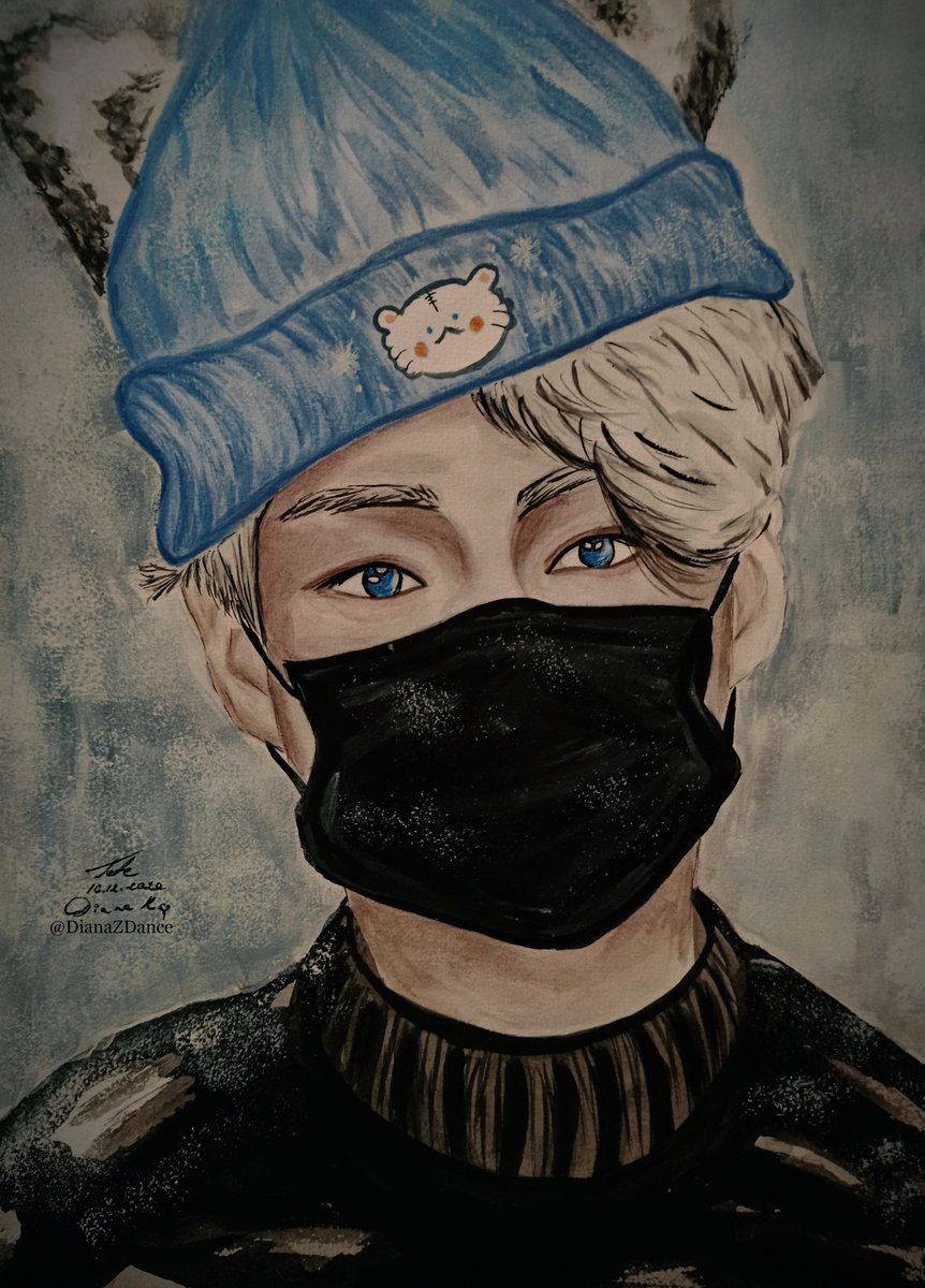 Saw @leikya_'s custom made beenie and I had a need to draw Taehyung in it 😬🐯❄️💙 @BTS_twt #btsfanart