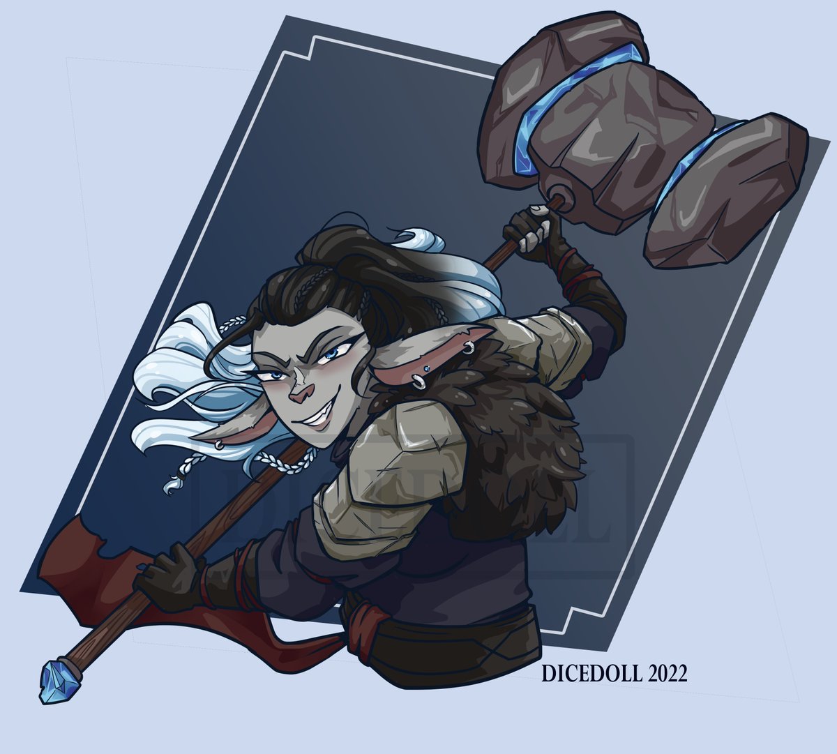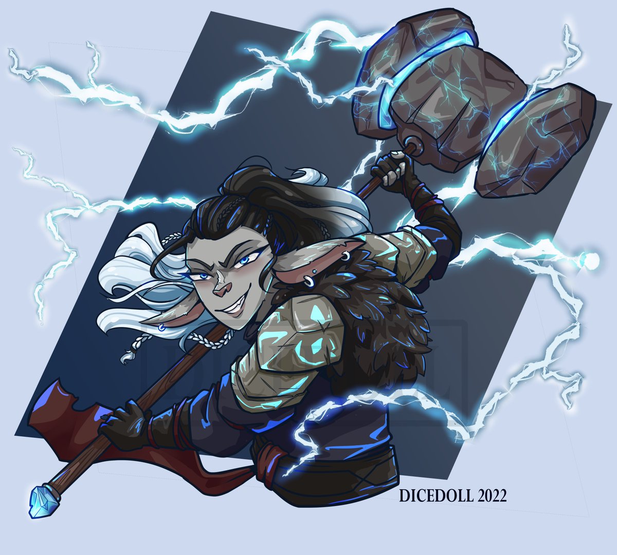 Finally able to finish this fiersome firbolg Artemis as she's getting ready to swing at her enemies! A commission for the wonderful @_Unforg1ven_ ! #dndart #dnd5e #originalcharacter #DnDcharacter #firbolg #fighter #runeknight #lightning #magic