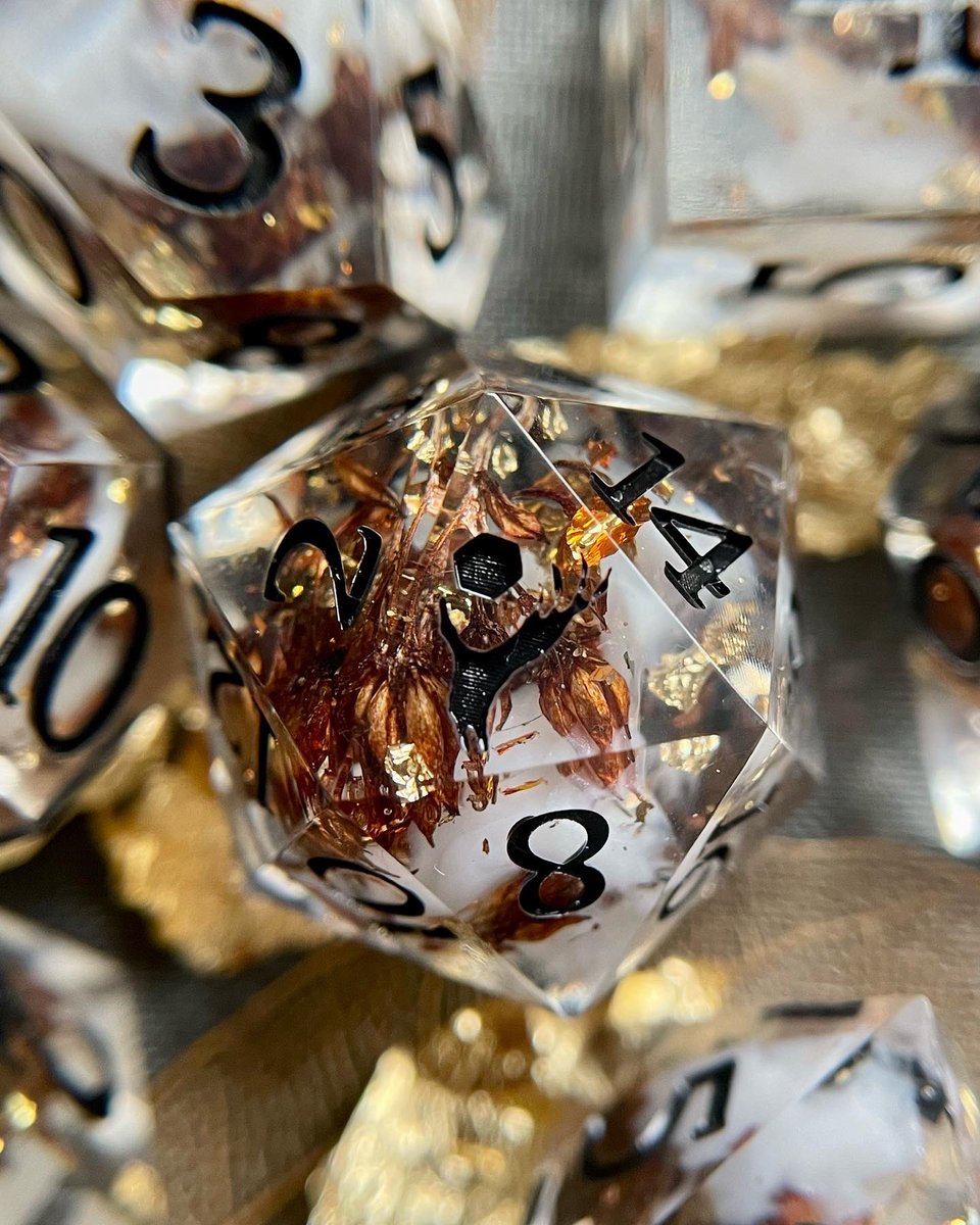 Feychella 🌸 Inspired by @NADDPod and @eaxford!! #handmadedice #dicemaker #dnd #dndart #dnd5e #naddpod #dice #ttrpgcommunity #ttrpg
