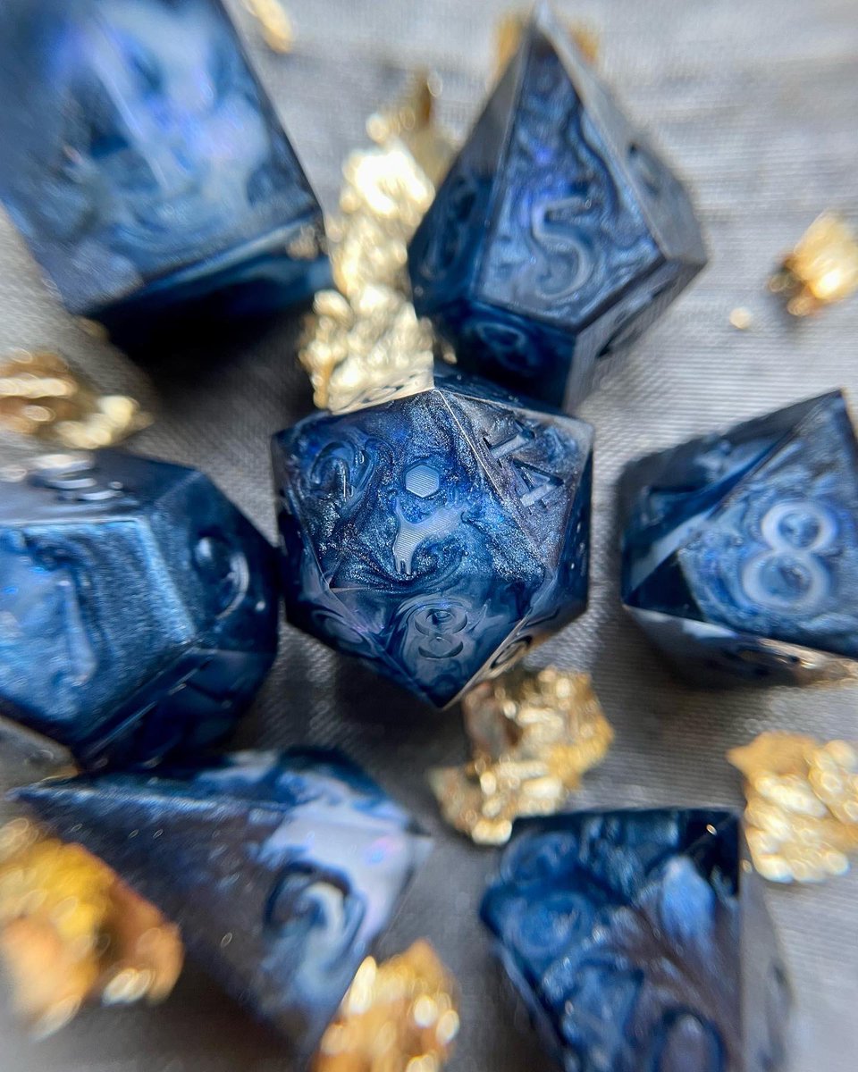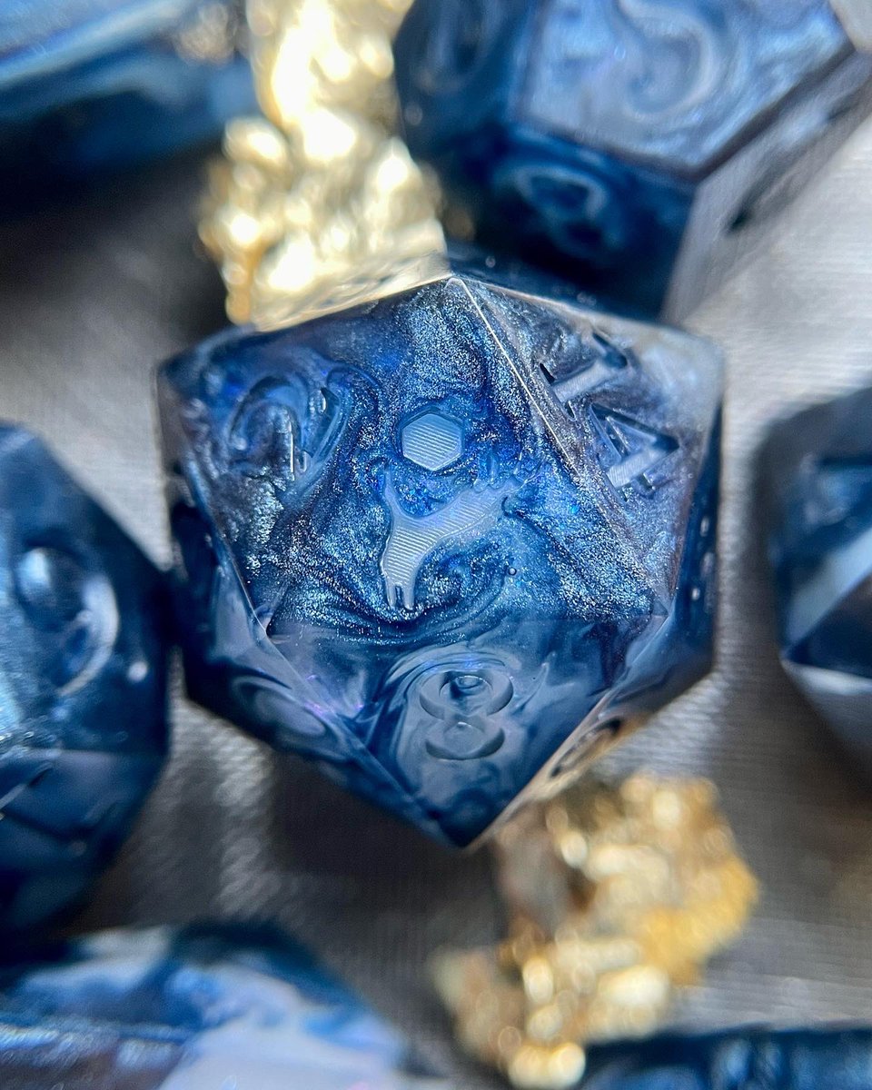 Below the Waters 🌊 This set is up for auction on my patreon! #dice #handmadedice #dnd #dndart #DungeonsAndDragons
