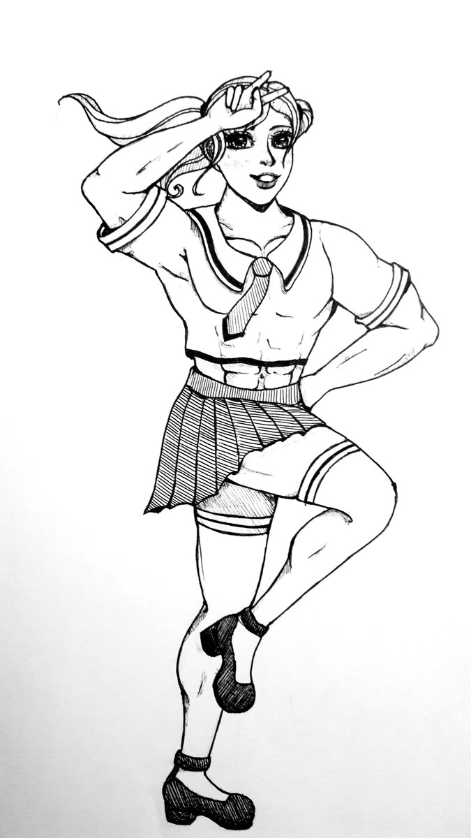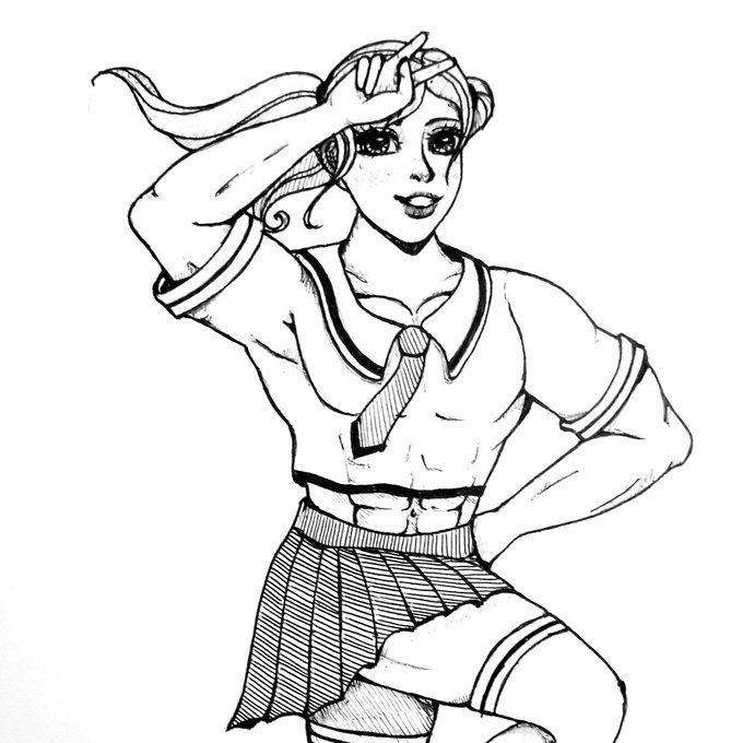 Inktober 2020 Day 3: Bulky 💪🌸 @Ladybeard_Japan #inktober #inktober2020 #bulky #bodybuilder #ボディービルダー #muscles #筋肉 #kawaii #可愛い #animegirl #セーラー服 #ladybeard #traditionalart