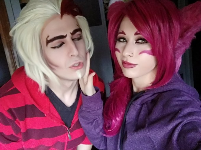 "Not now, Rakan!" Rakan: @Zihark_Krios Xayah: @DidsRainfall / Lenses: Cat eye from @cc_lenses #leagueoflegends #leagueoflegendscosplay #xayah #rakan #xayahrakan #lol #cosplay #cosplayers #xayahcosplay #rakancosplay @leagueoflegends @SpanishCosplay @lol_spain
