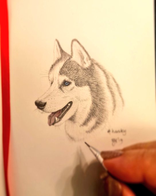 ✍️ #husky #inktober2019 #inktensepencils 💙 @derwentart #derwentprecisionpencil @paperblanks sketchbook