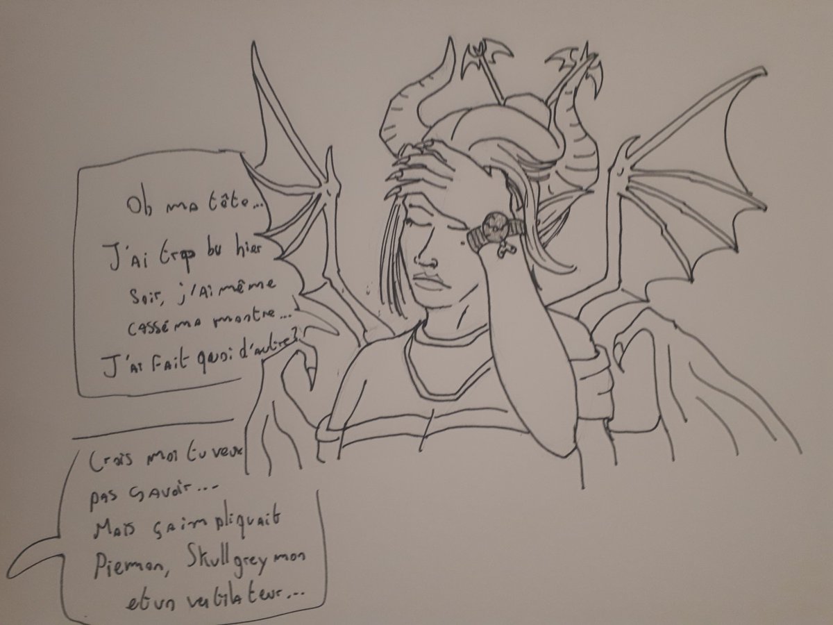 DigInktober jour 8 Lilithmon, montre pour les contraintes. Et une turbocuite. Vous aviez les artworks avant qu'elle aille en boîte de nuit, maintenant vous avez l'artwork du lendemain matin.#DGtober2021 #inktober2021 #Digimon #turbocuite