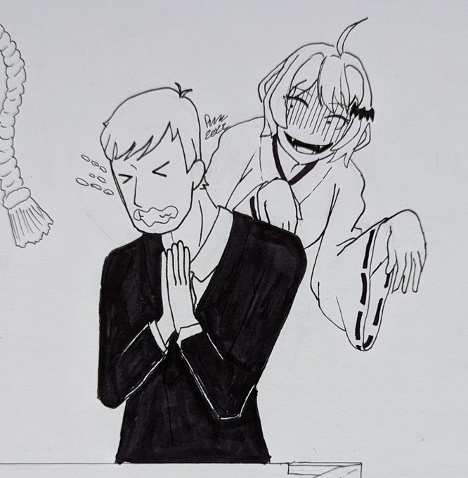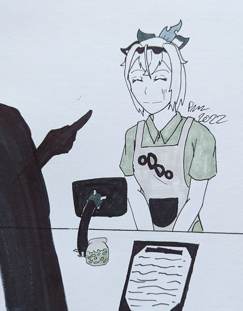 #HOLOctober day 24, 25, and 26. I've drawn more men in skirts than I expected to. Ame, Ame! You can't mix drinks with your eyes closed! Big forehead. #みやびじゅつ #ameliaRT #Uyu_Art #inktober2022