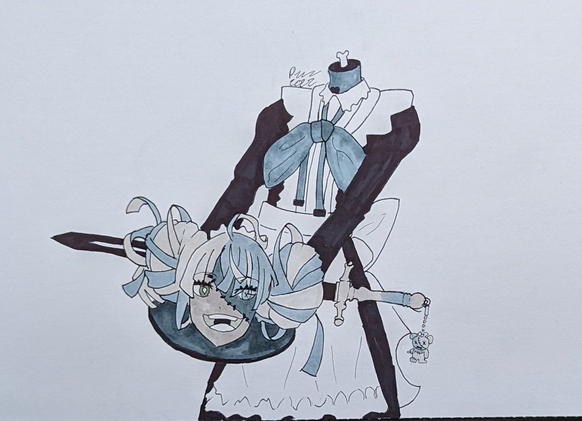 Crazy maid. Weirdly the most Halloween-y thing I've drawn so far. #graveyART #holoctober #inktober2022