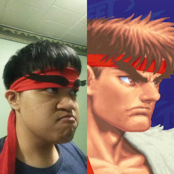 Throwback to a Ryu cosplay I did as a joke about how his eyebrows poke out & over his headband lmao #cosplay #Capcom #StreetFighter