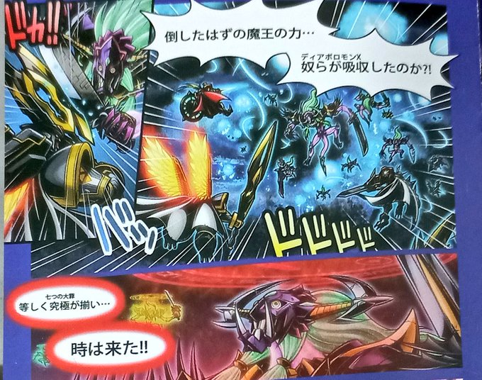 En este fragmento del mini manga de Chronicle-X podemos apreciar a los Royal Knights enfrentando a los Diablomon-X portando las hojas de los 7 Grandes Señores Demonio. Momentos previos al ascenso de Ogudomon #Digimon #digimonart #DigimonAdventure #DigimonGhostGame #digimonfanart