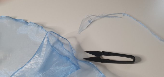 8h21. Levé et café pris. Je suis déjà en train de découper mes kilomètres de froufrous.... à quel niveau est ma patience ?! #cosplay #twitchcon