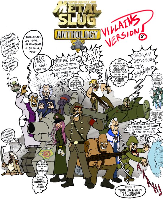 No pude resistirme a dibujar también a los villanos del metal slug, y como es una interpretación más libre del #redrawgameboxart le puse muchas coñas XD #metalslug #metalsluganthology #portada #originalart #lineart #donaldmorden #morden #rebelarmy #allenoneil #abigail #amadeus