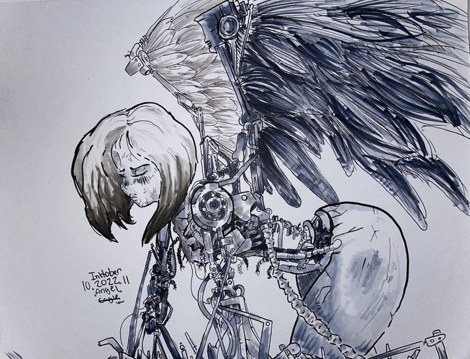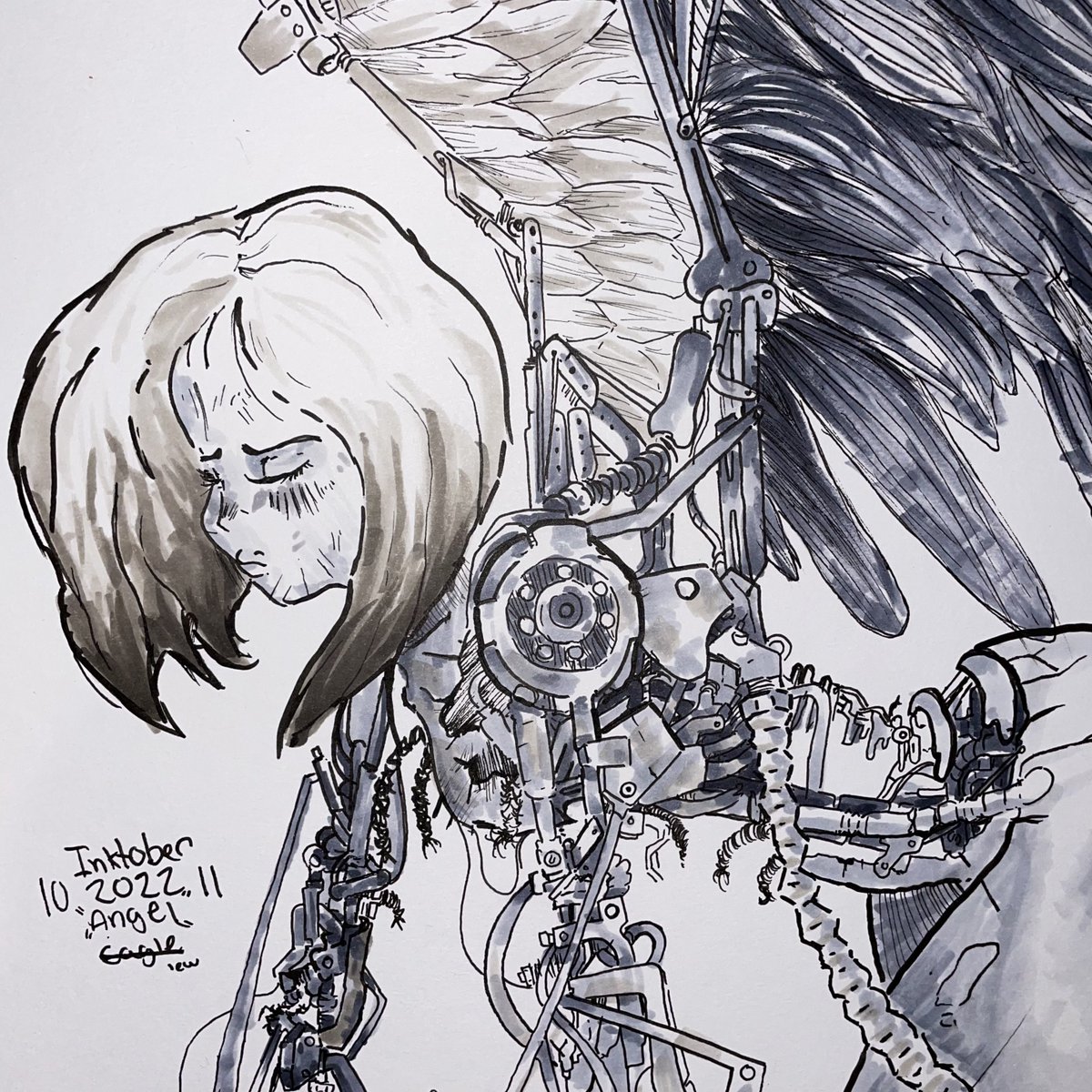 Inktober Day 11: “Angel”. Fuck Eagle, Alita time #inktober2022day11 #inktober2022 #inktober22 #alita #eagle #angel