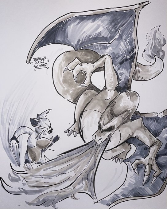 Inktober Day 4: Scallop This is a big stretch but Dewott has a scallop as a weapon lmao (also just an excuse to draw charizard) #inktober2022 #inktober2022day4 #inktoberday4 #pokemon #Charizard
