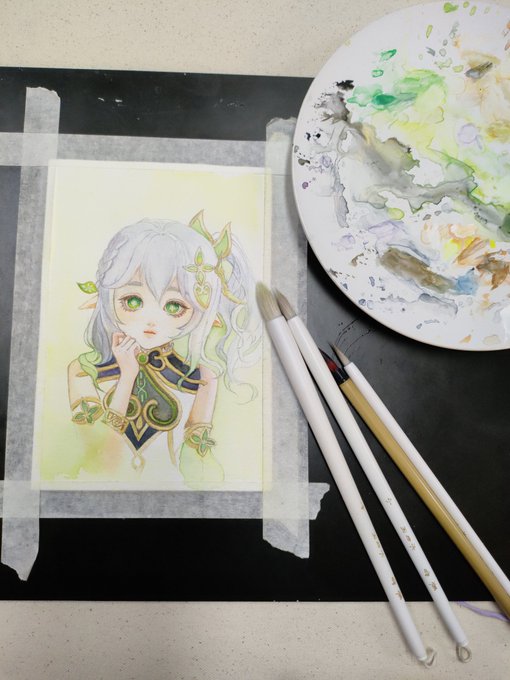 #GenshinImpact #原神 #纳西妲 #水彩 #水彩画 用水彩画了原神纳西妲,腿个进度.