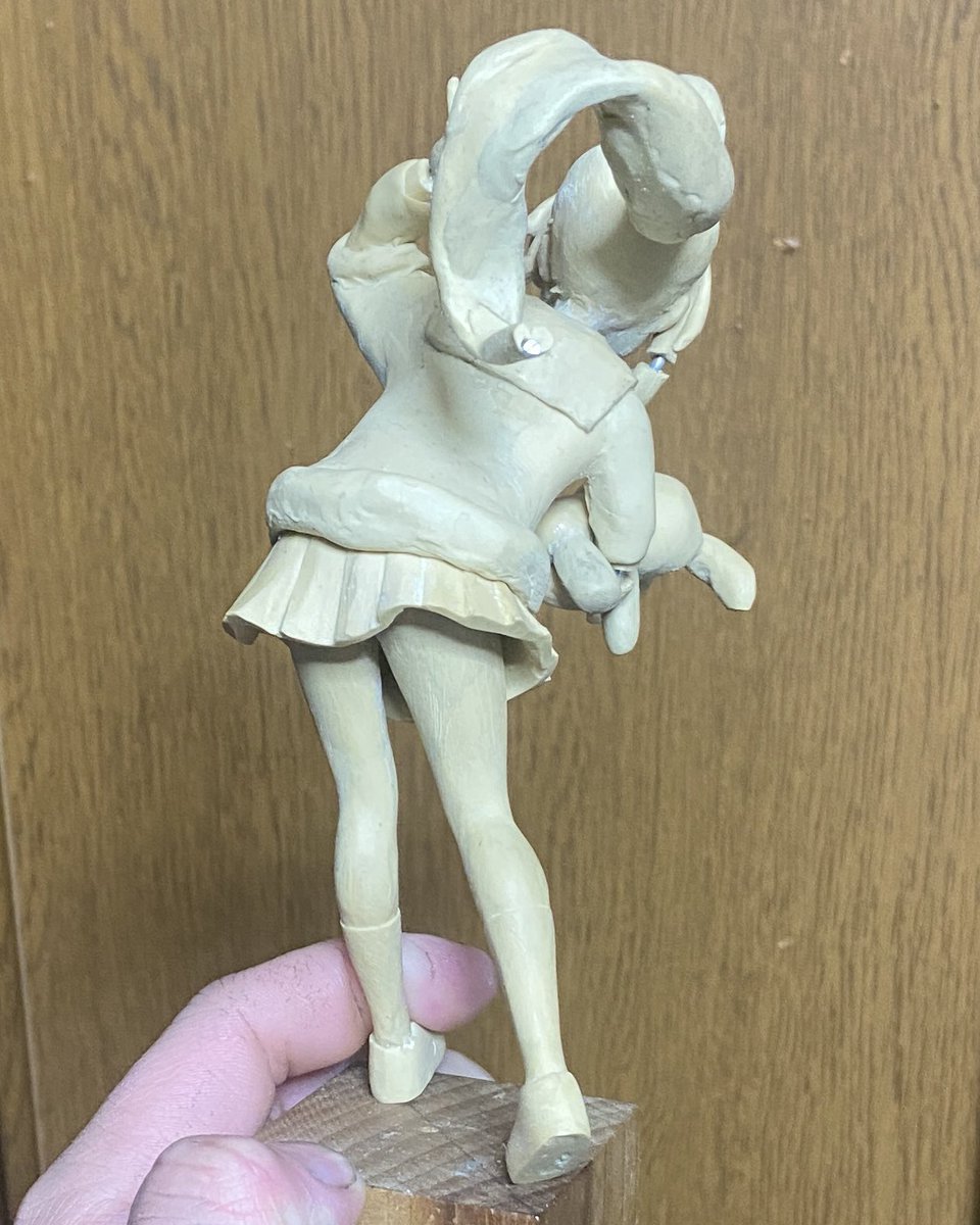 ・セーラーとネクタイをどう作るか?上半身をどう割るか? ・後頭部の髪の分け目をどう彫るか? …悩みは尽きませんなぁ