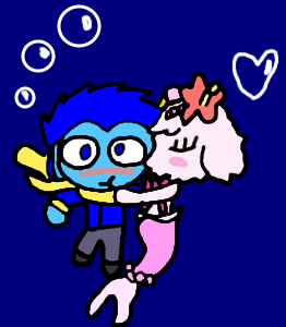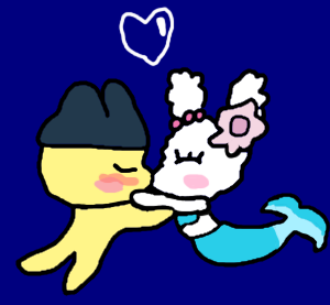 A kiss under the water. #tamagotchi #mametchi #lovelitchi #mametchixlovelitchi #mamelove #mermaid #mermay #mermay2021