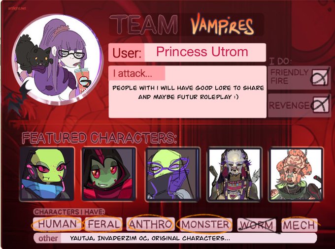 Hey #artfight #artfight2023 I’m joining the #artfightvampires for this year. artfight.net/~PrincessUtrom
