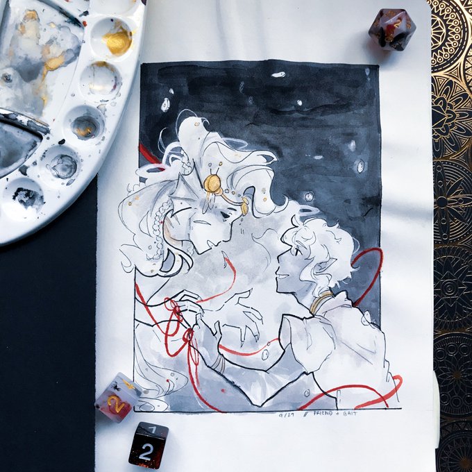 Day 2: Friend + Bait “Let me drown in your love; take me to the abyss of your heart.” Ft @sugarhyped4real & @KingKaseii ‘s kiddos from our #DnD campaign ! #inktober2019 #oc_tober