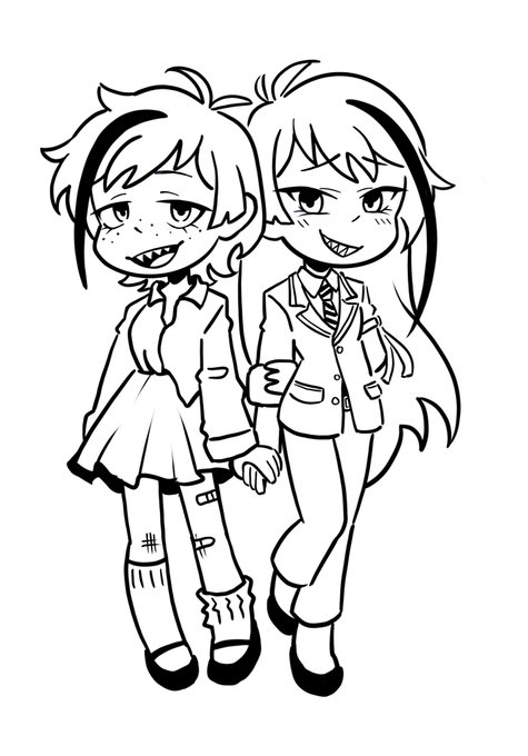 Fem Floyd with short hair that likes dresses vs fem Jade with long hair that likes suits idk I just think they’re neat #twst #twstファンアート #ツイステファンアート