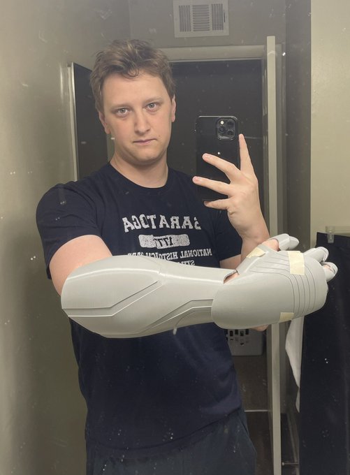I almost cried this morning. The print came out perfectly! Never in my wildest dreams would I think I could do something like this. The arm is done. Next is bicep and shoulder. #ironman #cosplay #3Dprinting