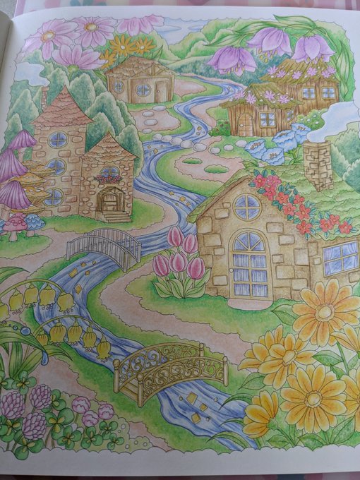 1 6 大人の塗り絵。⑥ やっぱりむずー💦 光のコントラストとかよくわからないよ〜。 とりあえず、でけた✨ww #大人の塗り絵 #ぐっすり眠れる不思議なぬり絵 #色鉛筆 #水彩色鉛筆 #絵描きさんと繋がたい 21/05/02 23:29